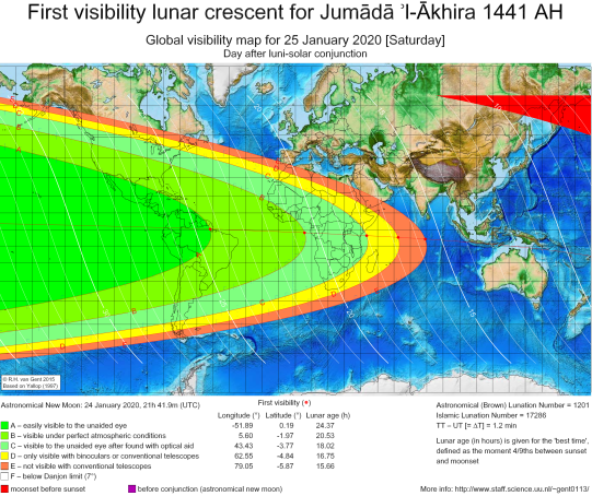 NASIMCO wishes to inform the community that there were verified sightings of the crescent moon by the naked eye in Orlando, Florida, and Phoenix, Arizona, during the sunset of Saturday, January 25th, 2020. Therefore, the first day of the month of Jumada al-Akhira, 1441 A.H.,  according to the  multiple horizons opinion, will be on: