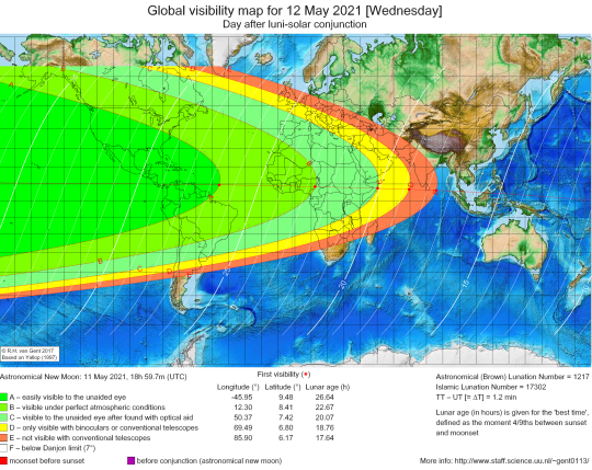 NASIMCO wishes to inform the community that there were verified sightings of the crescent moon on Wednesday May 12th, 2021 in North America.